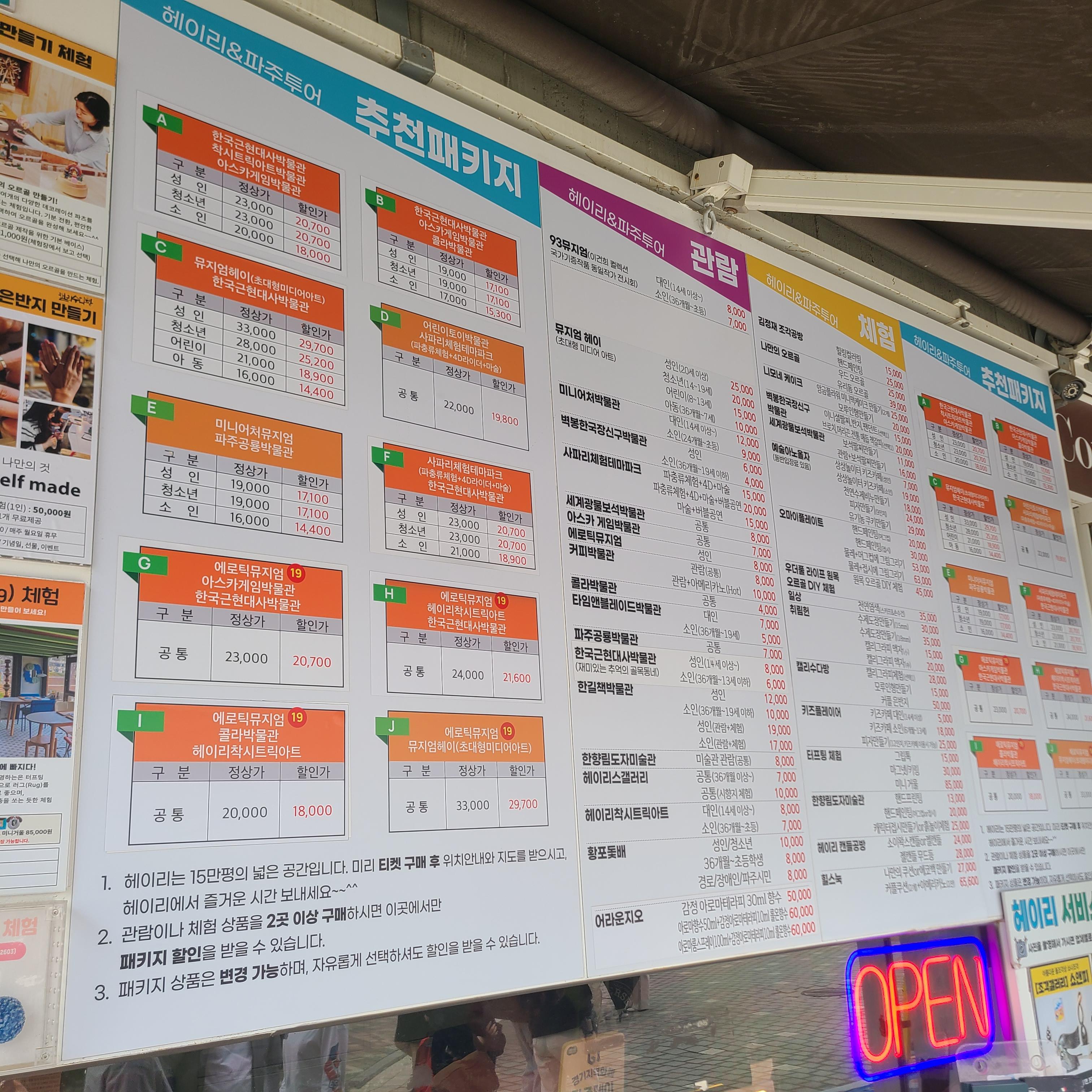 모두 설명해드리고 싶지만 저희가 직접 체험한 곳이 2곳이라서 이번에는 다녀온 2곳을 포스팅해드리려고 해요.
