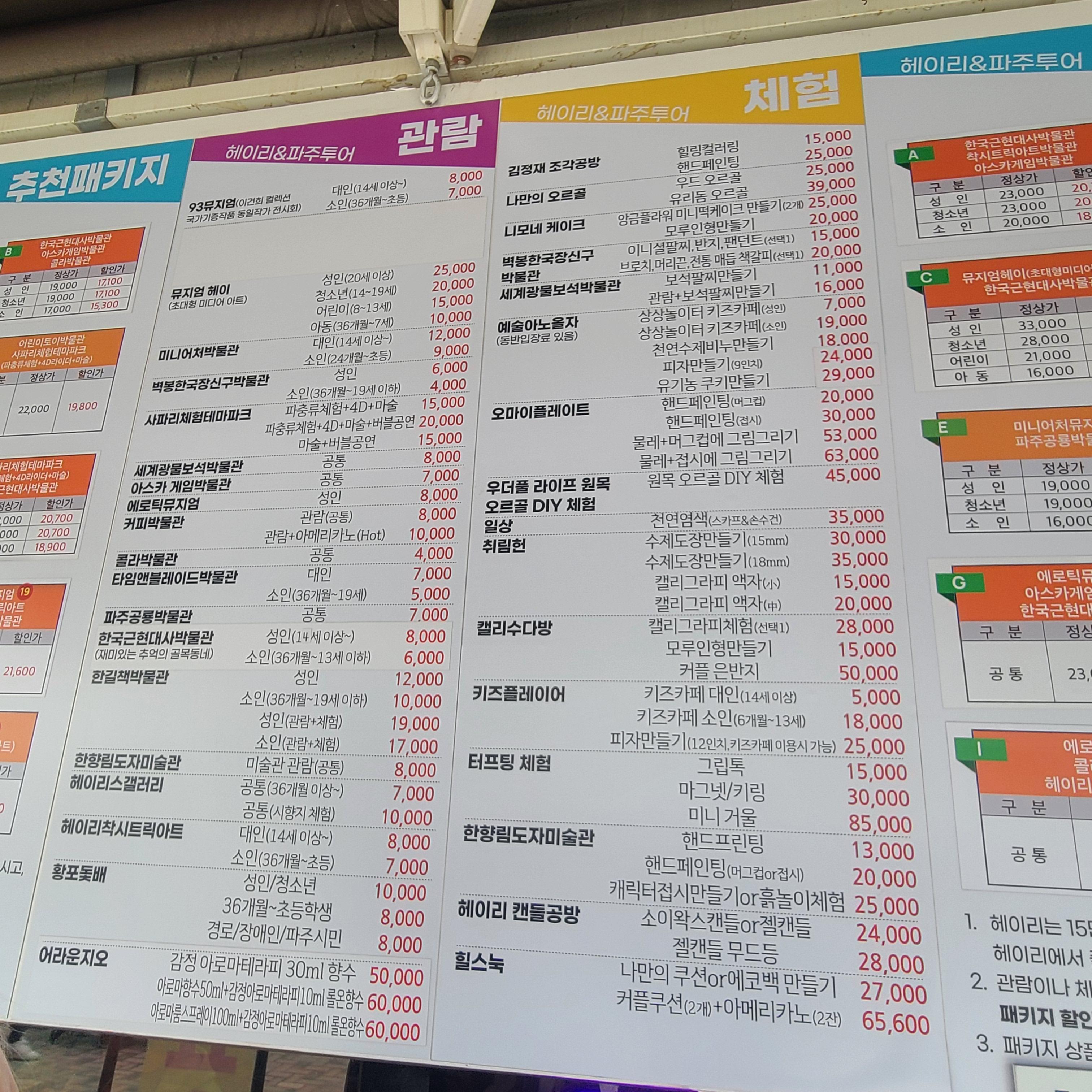 가격이나 프로그램은 사진들을 참고해 주세요!