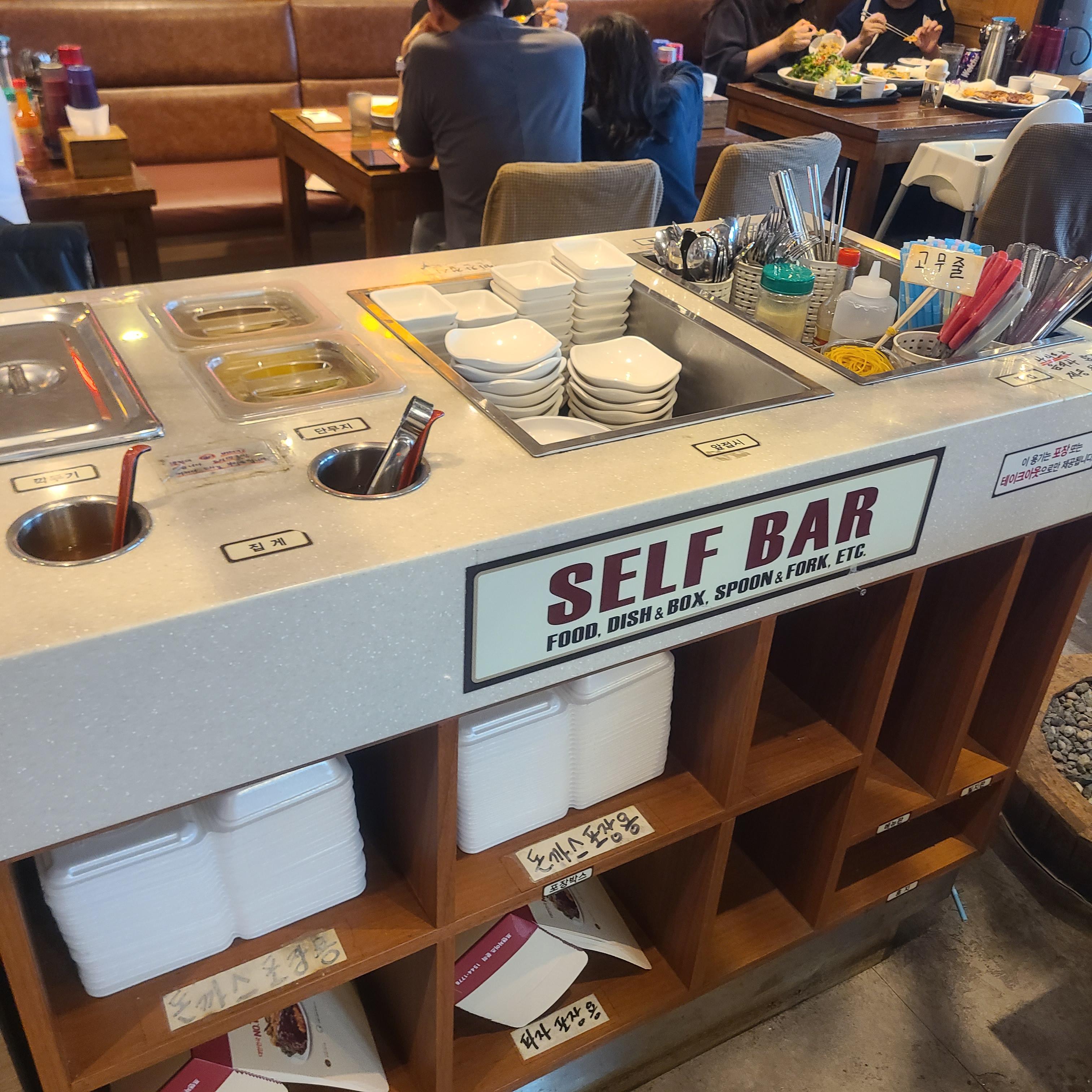 매장 중앙에는 셀프바가 설치되어 있어요.
